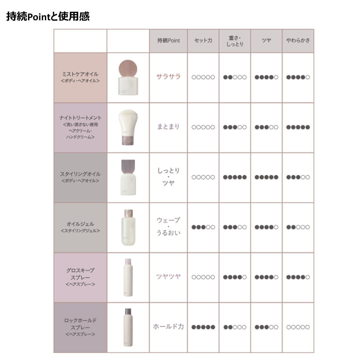 紫外線などの外的ダメージから髪を守り、雨の日でも一日崩さない耐湿処方つくったスタイルを瞬間ホールド。